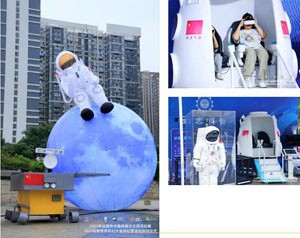现场展览展示区域共包含科创基地、通讯科技、国防科技、航天科技、气象科技、农业科技、科幻杂志、时空漫想等八大版块,同时配套科普剧本杀等互动环节,面向全体市民进行为期3天的线下科普活动。