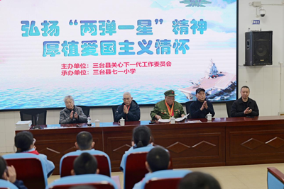 为认真贯彻落实全市关工委工作会议精神,聚焦立德树人根本任务,3月28日上午,三台县关工委联合七一小学成功举办科学家精神进校园活动,邀请市科技宣讲团张光明、绵阳市科协委员,绵阳市关工委科技宣讲团团长张光明和绵阳市关工委科技宣讲团五老志愿者、原中物院环保中心总工程师朱永全教授(中国第一颗原子弹爆炸60周年纪念章获得者)开展“弘扬两弹一星精神·厚植爱国主义情怀”主题宣讲。三台县关工委执行主任康定源,县关工委常务副主任江雪竹参加活动。