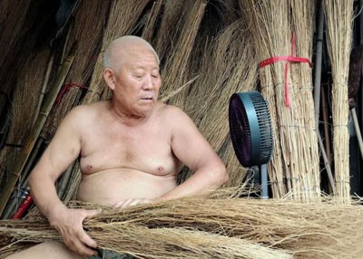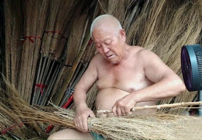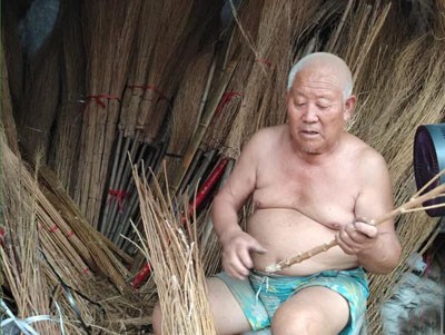 又忙着手里编扫把的活儿