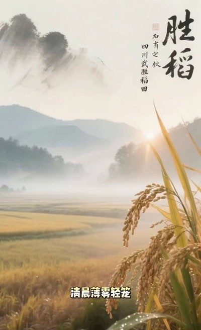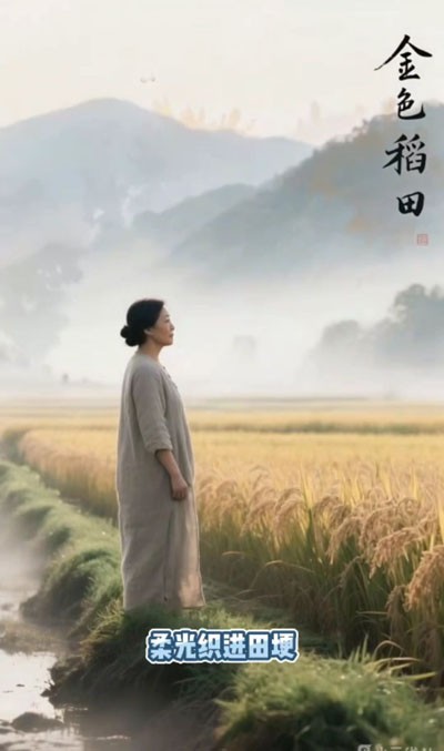 清晨,薄雾如轻纱般悄然铺展,温柔地掀开四川武胜农门那静谧的面纱。稻田在熹微的晨光中低垂着穗头,一串串金黄的稻谷仿佛在窃窃私语,诉说着大地深处最细腻、最温情的秘密。露珠沿着修长的叶尖缓缓滑落,宛如一句尚未落笔的诗行,晶莹剔透,含蓄婉约,带着几分少女般的羞怯与诗意。这一刻,秋天并非以喧嚣的姿态降临,而是将阳光细细捻成柔光的丝线,一针一线,悄然织进军绿色田埂的褶皱里,也织进了女人心底那份对故土绵长而深沉的眷恋。