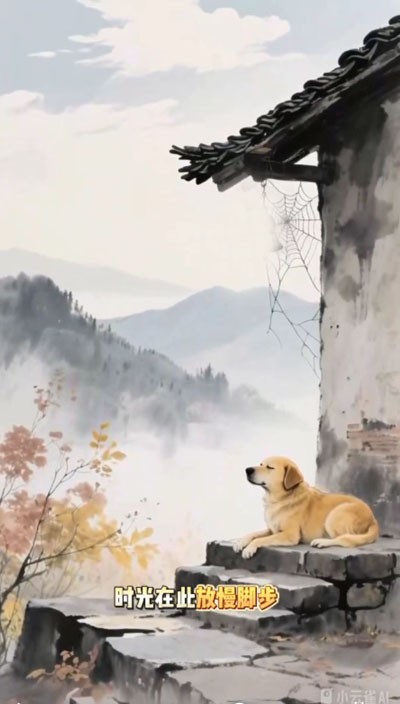 老屋檐下,风铃静默,蛛网在微光中轻轻颤动,仿佛连时间也放慢了脚步,不忍惊扰这份宁静。一只黄狗懒洋洋地卧在青石阶上,眯着眼,数着天上缓缓游走的云片——那云,洁白松软,像极了儿时母亲晾在竹竿上的棉布,干净、温暖,带着阳光晒透的清香。而当一缕炊烟袅袅升起,秋便有了最柔软的笔触。它不声不响,在青瓦之上轻轻写下暖意,像极了母亲在厨房忙碌的背影,无声无息,却让人心底生出无限安稳与依恋。