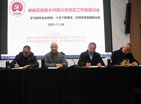 11月26日,成都市郫都区老科协助推乡村振兴老党员工作室2025年第四次工作培训会在林惠农业公司开班。33名老党员工作室成员参加培训。培训会议由党支部委员、副会长兼秘书长马洪春主持。