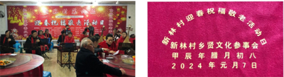 新林村辖区九个社有70岁老人236人,考虑老人们有些年岁已高行动不便,活动邀请了18名(每村2名)70岁以上的老年人代表到场参加活动,由社长将活动纪念品、印有“新林村迎春祝福敬老活动日”标志的红色围巾送到未到场老人手中。