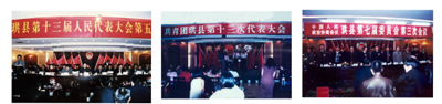 2002年6月16日,“珙县第十三届人民代表大会第五次会议”在僰都大酒店三楼1号会场召开;图(2)→2005年5月2日,“共青团珙县第十三次代表大会”在僰都大酒店三楼1号会场召开;图(3)→2003年2月11日,在僰都大酒店三楼1号会场召开的“中国人民政治协商会议珙县第七届委员会第三次会议”。