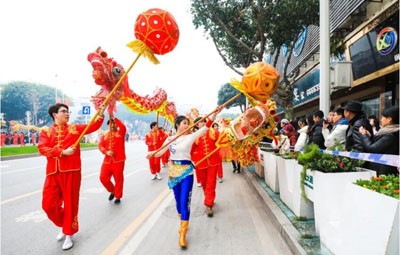 在一片热闹欢腾中,舞龙队员们身着统一的鲜艳服饰,整齐划一的着装彰显着他们的专业与热情;一旁的彩狮灵动俏皮,憨态可掬,狮头的装饰精致无比,每一处细节都处理得恰到好处;彩车造型更是独具匠心,每一辆都承载着独特的设计与寓意。彩车上,汉服爱好者们衣袂飘飘,举手投足间尽显古典韵味,为这场巡游增添了一抹浓厚的文化气息。