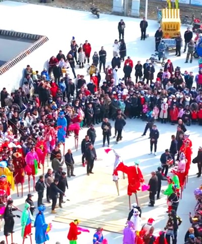 高跷盛会乐声飘。