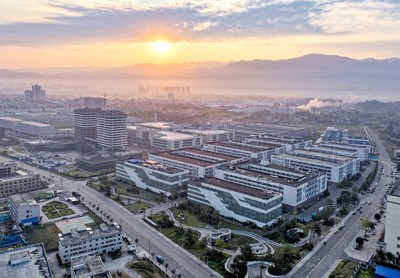 鸟瞰晨曦映照下的四川省华蓥市民营企业发展平台华蓥山经开区一角。