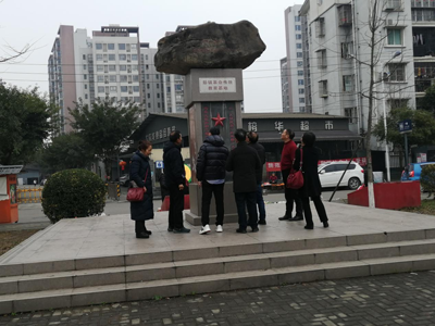 会后,与会同志冒雨瞻仰了擦耳大桥桥头的徐茂森、徐海东纪念碑,并到金马河畔的金桥红色记忆广场聆听了彭镇关工委副主任胡学君深情的讲述。