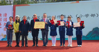 大会内容精彩纷呈,有武术、巴乌表演、有经典诵读、有诗词轮答,在点字成诗、诗词接龙和飞花令环节中,天台岗各校区的学生代表队表现都十分出色,明确看出学生们对传统诗词的热爱,也能感受到传统诗词对学生们的成长有着十分重要的意义,这种传承就是民族文化自信的源泉,所以,本次诗词大会获得一等奖的冯子墨、张玉生、陈遇贤、张天炜四名同学,也获得了加入南岸区作家协会机会,成为区作协最小的会员,指导老师聂雯倩也一同加入作协,这代表着文学可持续发展。半川社长和忆卿社长为新晋学生会员颁发证书与奖状的同时,杨金帮主席也授牌“重庆市南岸区诗词创作基地(小学部)”予徐勇校长。