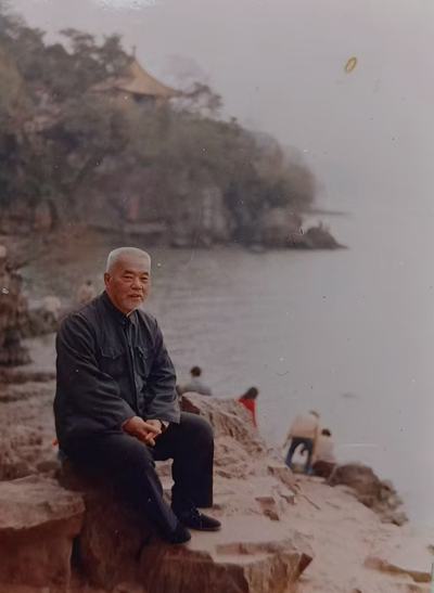 荣泉源晚年回到故乡无锡在老宅侧太湖边留影。他自1926年3月在上海进入“申新纱厂(一厂)后,又至武汉(申新时年46岁。4厂),内迁入陕,历时近70年重返故乡,身体健壮,神态安详。