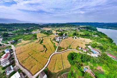 初夏时节,四川省华蓥市在永兴、明月、华龙等乡镇、街道实施的以工代赈项目基地种植的优质小麦、油菜获得丰收,村民们奔忙田间及时收割,乐享以工代赈带来的实惠。