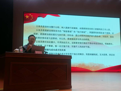 整场授课案例鲜活、内涵深刻,兼具理论高度与实践指导性,为新入职干部扣好职业 “第一粒扣子” 提供了宝贵指引。学员们纷纷表示:通过今天的授课,明白岗位的核心是责任与担当。今后,将主动学习政策理论和岗位技能,同时运用 “勤于汇报、善于沟通” 的工作方法,融入团队、协同发力,努力成为 “政治过硬、本领高强”的优秀公务员。(广安市老促会 李云娥)