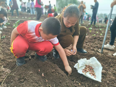 在劳动基地,家长和孩子们一起开始了紧张而有序的播种活动。他们分工合作,互相帮助,共同完成了播种任务。