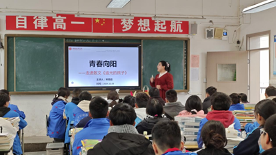 宋雨霜老师是成都文理学院文法学院语文教育教研室副主任、写作课程负责人,也是四川省作协会员、四川省文艺评论家协会会员,有着扎实的文学理论与较为丰富的写作经验。此次送教课题为“青春向阳---走进散文《追光的孩子》”,该篇文章收录进宋雨霜老师的首部散文集《生命的芭茅花》,该文也被列入全国多省中学语文阅读试题。此次听课对象是高板中学高一六班的全体学生,以及部分语文教师。