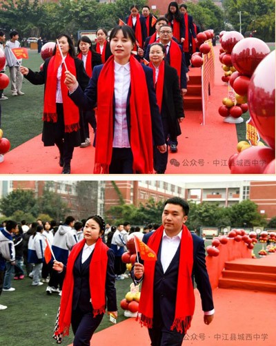 教师方阵步履铿锵,衣袂卷起知识的星火。