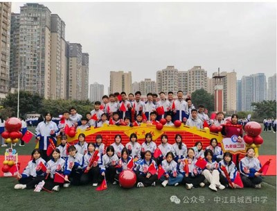 晨光初绽,初三师生踏着激昂的鼓点,从“奋斗门”出发,踏过象征智慧积淀的“状元桥”,迈向满载期许的“成功台”。