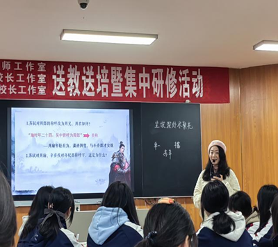 开幕式后,工作室成员吕辉、何可两位教师分别带来示范课《诗韵悠长,探索古诗词的情感密码——中职高三第一轮复习之鉴赏诗歌情感》和《千古苏辛伯仲间,尘埃深处尽繁花——〈念奴娇·赤壁怀古〉〈永遇乐·京口北固亭怀古〉对比阅读》。课堂以项目式教学为核心,通过情境创设、任务驱动等方式,引导学生深度感受古典诗词的意境与情感,彰显语文课程的工具性与人文性。