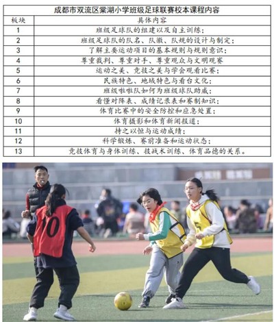 用好校本课程课时,一个年级每周有一节体育课同时走班,开展三大球班级联赛;把班级联赛排进课表,从时间上给予保证其持续常态开展。开发并实施13项内容的观赛课程。