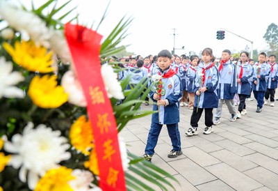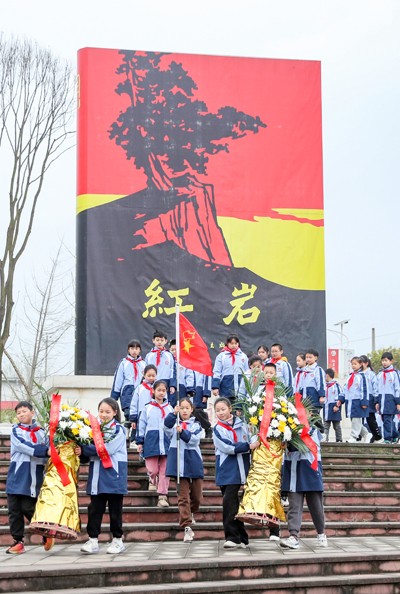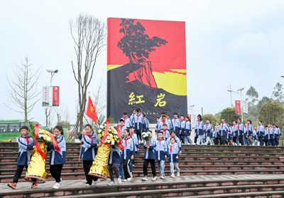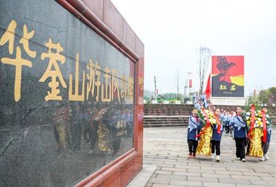 清明节临近, 革命老区、“红岩”故里四川省华蓥市开展系列祭扫活动,当地干部群众及少先队员来到华蓥山游击队纪念馆、红岩广场、华蓥山游击队群雕前,缅怀先烈,铭记历史。