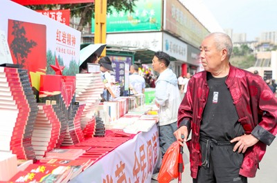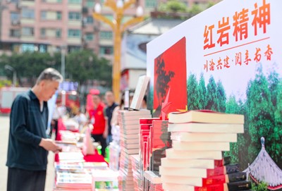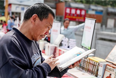 2025年4月17日,在四川省华蓥市举行的“川渝共建·阅享书香”2025年“书悦华蓥”全民阅读活动启动仪式上,市民在图书展销区选购图书。