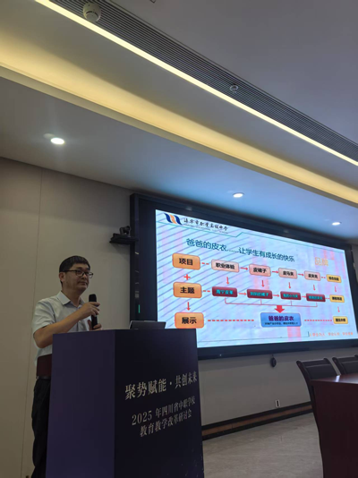成都洞子口职业高级中学校骨干老师王柱老师以《如何上好一堂英语课》为题,展开别开生面的说课分享。他紧扣职教英语 “以情境为载体,以素养为导向,以技术为支撑” 的创新理念,巧妙融合语言教学、文化渗透与职业技能培养,通过丰富鲜活的案例,将理论知识生动呈现。令人眼前一亮的是,王柱老师全程采用英语口述说课,独特新颖的形式不仅展现了扎实的专业功底,也让现场教师耳目一新,收获广泛认可。