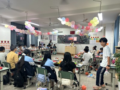 活动现场,各班特色鲜明,热闹非凡。关工委与德育处提前统筹规划,指导部分班级聚焦“爱国情怀培育”,精心选取《我和我的祖国》《万里归途》等影片片段播放,光影间带领学生重温家国故事;另有班级围绕国庆历史、中秋习俗设计知识问答与猜灯谜环节,“新中国成立时间”“中秋祭月习俗”等题目激发学生抢答热情,小文具奖励更让互动趣味十足。