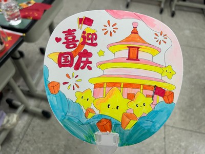 而最具视觉冲击力的当属“画笔礼赞祖国”环节。同学们铺开5米长的绘画长卷,学生们分工协作,用画笔勾勒天安门、长城、国旗等元素,以绚丽色彩诉说对祖国的热爱;还有班级为每位同学准备空白扇子,大家或绘五星、或题“我爱中国”,一把把独具特色的扇子,成为承载爱国情感的“移动画卷”。