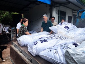 早上8点,该公司负责人刘剑就已经运输尿素到达了新桥镇,大家齐心协力将这1吨爱心肥料搬至该合作社管理人祝常康的院坝棚内。虽然大家都上了年纪,但是做起爱心事业,大家都精力充沛、毫不含糊。