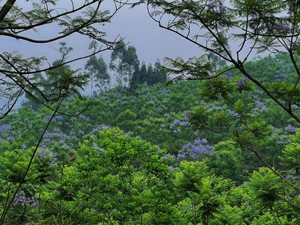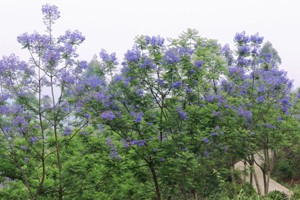 走进观山镇复兴社区观音寺,仰头望去,一棵棵高达10余米的蓝花楹绽放出喜人的态势。荣县观音寺乡村旅游开发股份有限公司负责人朱权武介绍,蓝花楹性喜阳光充足和温暖、多湿气候,复兴的生长环境、土壤条件完全能满足蓝花楹的生存需求,这也就是这3000棵蓝花楹能在复兴这片土地上“自由自在生活”的原因。