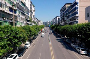 9月6日,拍摄的提质改造完成的四川省广安市广安区老城区洪州大道。