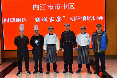 培训前一天,区老科协张翼会长率队走访基层,在下坝桥村,村党总支书记阴文义认为:此次培训应该注重年底特别是春节前农民工返乡希望品尝具有家乡味,外地人员走亲访友或是到本地游玩也希望吃到有“甜城味”的内江特色菜这样的实际需求。对此,区老科协专门组织“中国烹饪大师”李光前和“内江名厨”刘合江、江开贵三位大师傅以“甜城家宴”乡村系列菜品名录为依据,积极研究讨论,针对性的制定出了“7菜碟(三荤四素)”冷菜配热菜的培训方案。