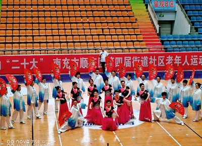 活动现场,来自顺庆区老体协的拳剑与柔力球组合节目《祖国万岁》凭借精彩绝伦的表演,成为全场焦点,赢得现场观众的阵阵欢呼与热烈掌声。而这一精彩节目的背后,是顺庆区老体协拳剑分会主席文连宣与柔力球分会主席罗晓南夫妇的倾心付出,他们的甜蜜爱情故事与投身老年健身事业的经历,也在人群中口口相传,成为一段佳话。