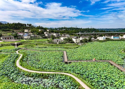 四川省华蓥市把实施渠江水环境综合治理与建设宜居宜业宜游的和美乡村有机结合,利用明月镇白鹤咀村的滩涂兴建以“荷月江岸”生态荷塘为主的景点,让渠江滩涂变成画廊,吸引不少市民前来打卡游玩。