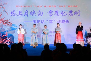一朵朵“白雪”飘落在校园中,一首首诗歌回荡在校园里,一场与雪有关的诗词会在歌曲《落雪千山等归人》中落下帷幕。然而,师生们围坐的炉火依然炙热,教室里的一盏盏灯火依旧明亮。虽不知,在这奎光塔下,大雪节气时,灌县学子的精神面貌和文学风采是否令周公欣慰,但这却是百年后文脉传承,灌县学子重学兴文的好模样。