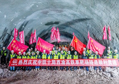 2024年12月31日,由中铁十局承建的位于四川省广安华蓥市明月镇境内的西渝高铁康渝段站前十一标草靶场隧道顺利贯通。