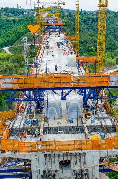 2025年8月24日凌晨,随着最后一方混凝土顺利完成浇筑,西渝高铁康渝段站前十一标四川省广安华蓥市明月镇人和寨村林家沟特大桥8#墩~9#墩跨中桥沟40+64+40m连续梁顺利合龙。至此,由中铁十局承建的广安段8座连续梁全部合龙,为后续架梁、铺轨施工奠定了坚实基础。