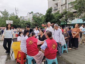 活动前,九江街道老协负责人和邹家场社区老协负责人以及志愿者们清理了场地里的积水,准备了义诊所需用品。组织前来义诊的人们有序参加义诊活动。