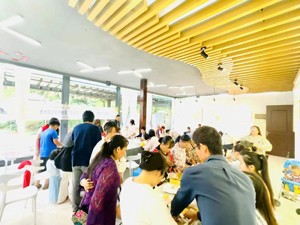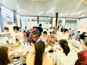 八月十五月儿圆,中秋月饼香又甜。现场志愿者手把手教学,和面、包馅、搓圆、放入模具按压成型,在一片欢声笑语中,一个个精致的冰皮月饼在居民们的手中诞生,大家纷纷拿着自己心爱的作品互相展示,拍照留念,互相祝福中秋快乐,现场弥漫着热闹愉悦的欢乐气氛。