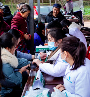 联系帮扶桦树村的营山县人民医院派出医生在现场免费为村民检查身体、发放卫生保健知识宣传资料。在节目表演结束后为全村的村民们准备了丰盛的午餐,在龙年即将到来之际向村民们表达了新年最美好的祝福。