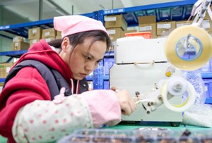 2024年2月19日,四川省华蓥市通过“春风行动”留在家乡的返乡民工,在华蓥山经开区领创电子有限公司生产流水线上安心作业。