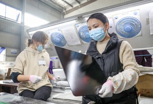 2024年2月19日,四川省华蓥市通过“春风行动”留在家乡的返乡民工,在华蓥山经开区领先微晶玻璃有限公司生产流水线上安心作业。