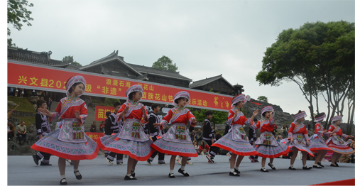 开幕式结束后,组织开展了从石海涌浪至石海僰寨旅游道上的苗族长号、芦笙、摆手舞、打莲枪等表演形式的文化巡游活动。