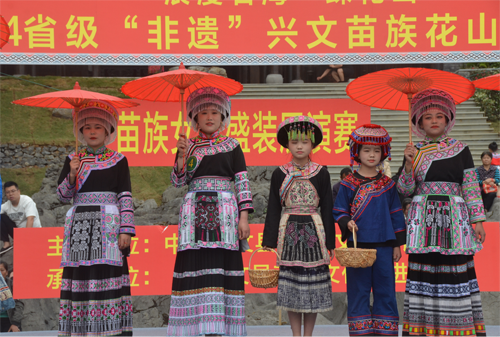 下午14时17:30分,县苗族文化促进会在石海苗寨文化广场组织开展了文艺节目表演、苗族女土盛装展演赛、苗族挤芦笙舞竞赛、上刀山展演、苗族情歌对唱、苗族箫筒、唢呐吹奏展演、苗族挑花刺绣、腰带编织演示、苗族服饰展示展销、苗族传统体育体验等活动,这些活动都得到了领导和广大观众及游客的一致好评。