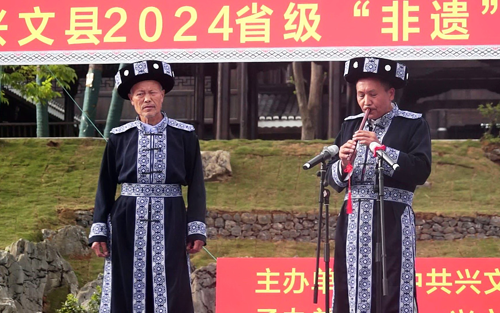 中午12时,在石海景区天泉洞大厅举办苗家长桌宴体验活动,受花山节组委会安排,兴文县苗族文化促进会会长、兴文苗族花山节省级代表性传承人李国文宣布苗族长桌宴开席,并提议各位领导、各位嘉宾和社会各界人士共同举杯,为2024年四川·兴文苗族花山节取得圆满成功,为各位领导、各位嘉宾和社会各界人士在龙年身体好、心情好、工作顺、事业兴、家庭幸福和我们伟大祖国更加繁荣昌盛吼当(苗语)、干杯。