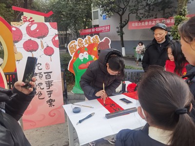 蛇年新春临近,为迎接乙已蛇年新春的到来,为了使成都市双流区黄甲街道双华小区的广大群众过一个欢乐吉祥的蛇年春节,营造新春佳节的氛围,1月18日上午成都市双流区黄甲街道双华社区、成都拾光社会工作服务中心联合黄甲街道(老体协)诗词楹联分会在双华空港新居开展主题为“墨韵迎新春.春联送万福”的赠送春联和送福活动。