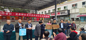 同时王伦义、唐俊林向长远社区党委书记毛春燕、副书记康华兵授予了“蓉城金秋志愿服务龙泉中队、长远社区志愿服务队”“长远社区老科技工作者协会”的挂牌。