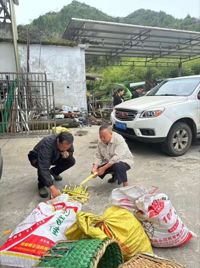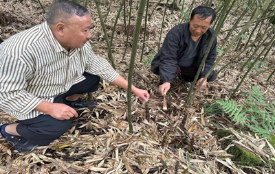 2024年10月2日,兴文县老科协兴文方竹老专家余热工程项国领导组、技术组成员李立权(县科技局原副局长)同示范基地现场负责人(中国林业上专家)陈文富深入兴文方竹老专家余热工程项目示范基地调研几十年不遇的严重干旱影响下的今年方竹正值采笋期的采收工作。