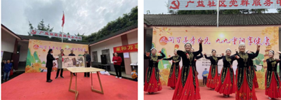 活动中,市老科协副会长、支部书记兼秘书长康忠勇、副会长周德明代表老科协,向广益社区党员活动室捐赠了市老科协会长刘刚所著《穿越千年的都江堰故事》和书画家的作品,老科协会员刘德玉带领都江堰新疆舞艺术团,为社区老年朋友们表演了精彩的舞蹈节目。