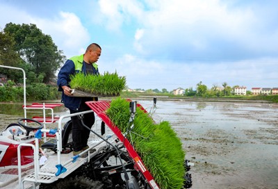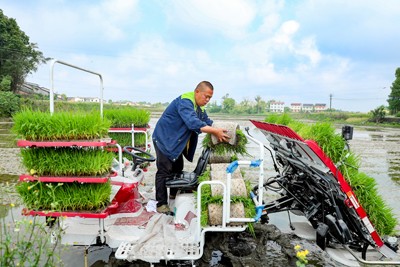 目前正值川东地区秧苗移栽关键时节,华蓥市的农民在农技人员的指导下奔忙田间,利用旋耕机、插秧机等农机具整理农田、栽插秧苗,新质生产力绘出春耕新图景。